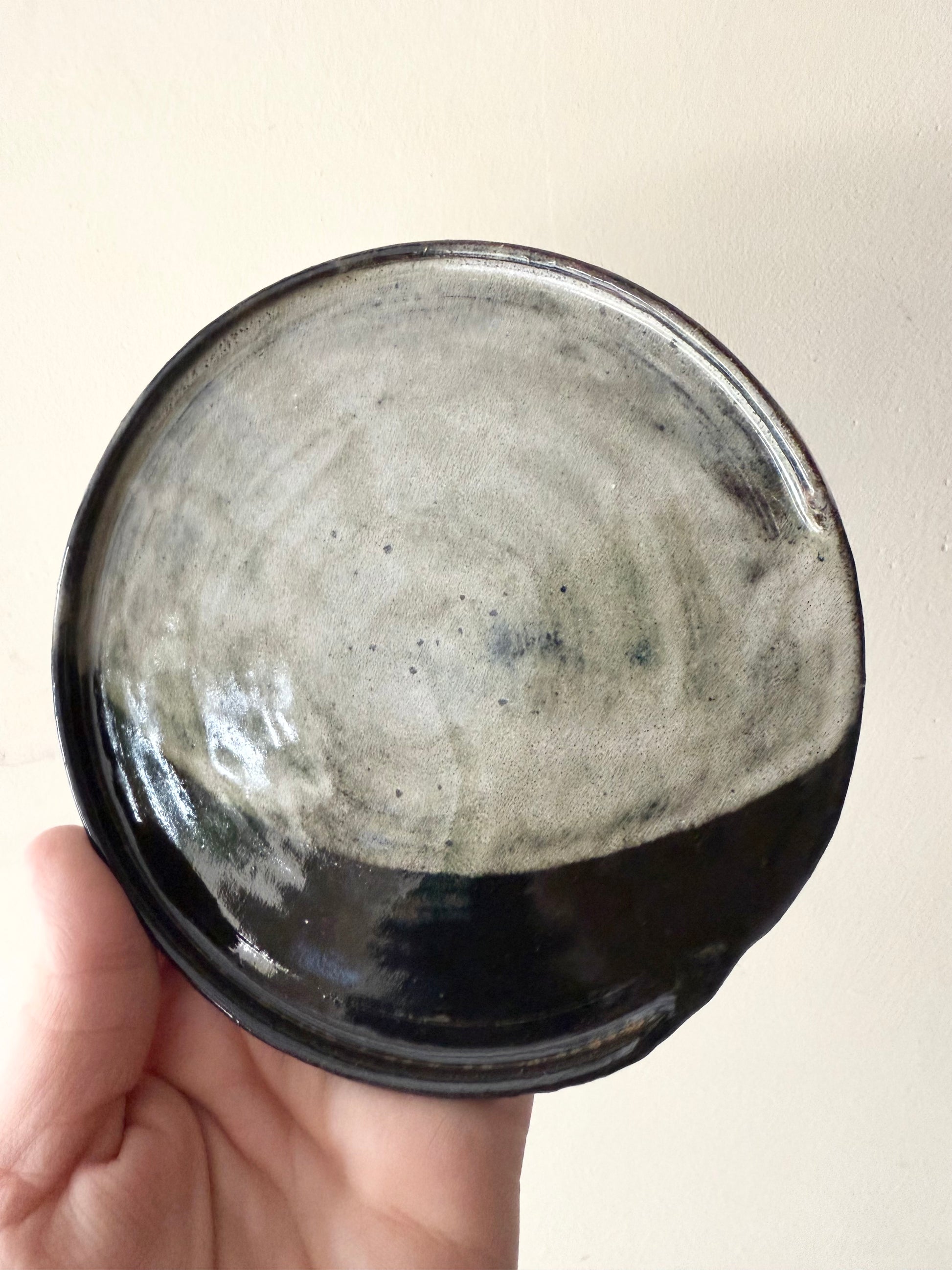 Spoon rest with black and speckled glaze. Dishwasher safe.